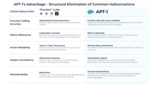 💡 In high-stakes CX, 80% accuracy is 100% unacceptable. For use cases like account transfers, credential resets, or ticket generation, even small hallucinations (the wrong digit, account number, or policy interpretation) are brand-destroying; deterministic agents that retrieve and verify values from systems, rather than “guess” via token prediction, are non-negotiable.